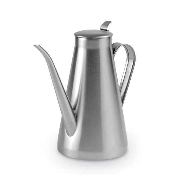 Aceitera Bra fabricada en acero inoxidable satinado con tapa y asa ergonómica para una fácil sujeción. Disponible en 1 litro.