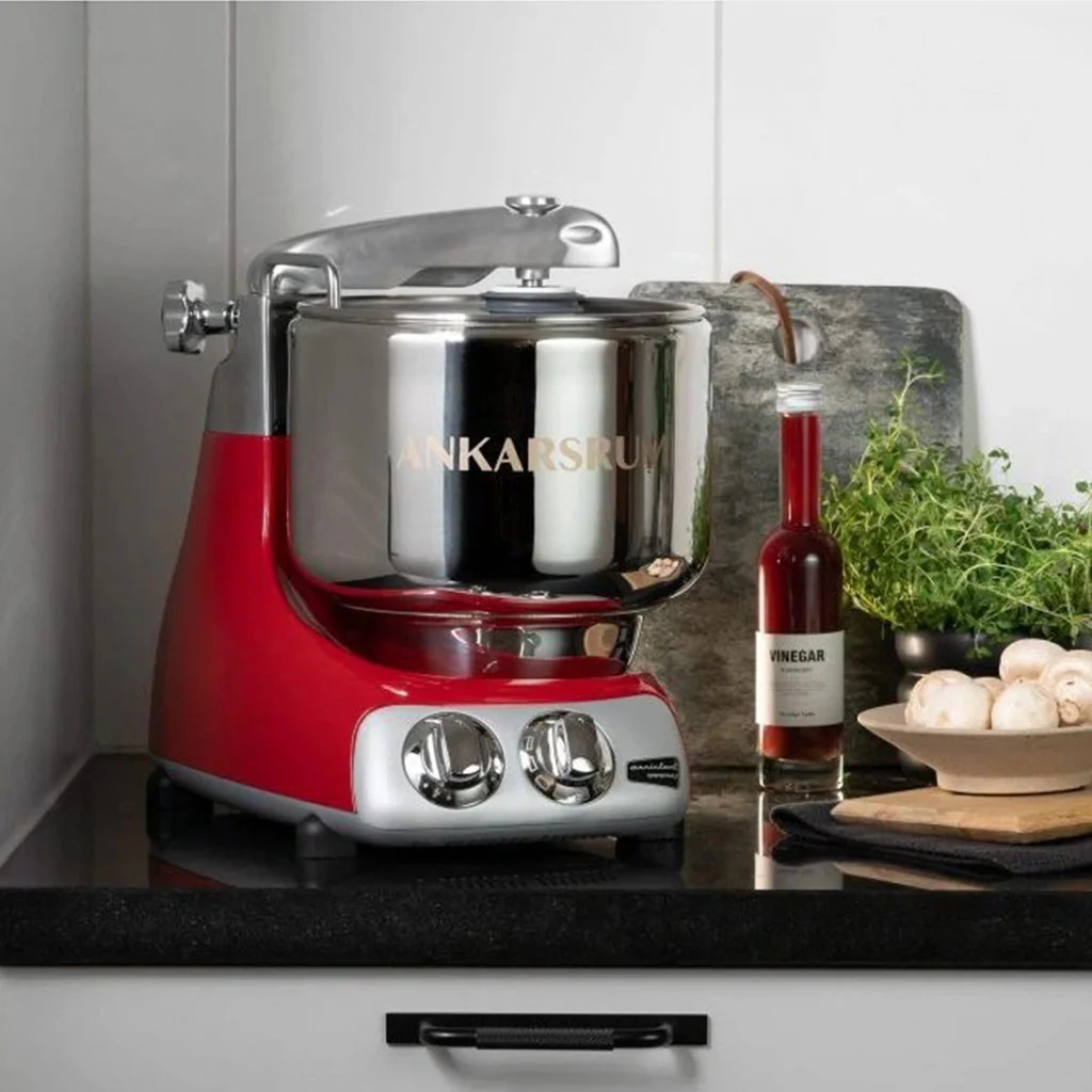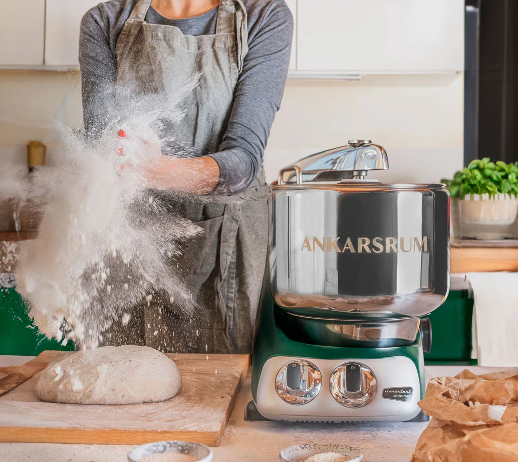 Ankarsrum es ampliamente conocido entre los entusiastas de la panadería en países nórdicos, y está ganando gran fuerza mundialmente. Este robot amasador de gran capacidad toma inspiración del diseño superior de las amasadoras “en espiral” utilizadas en la producción de pan artesanal. Su potente motor de 600 W, ubicado en la base, hace girar el bol de acero inoxidable de 7 litros contra un brazo amasador fijo de acero inoxidable. Como resultado, la Ankarsrum puede manejar cargas más pesadas, masas más fuertes y mayores cantidades con menor esfuerzo.