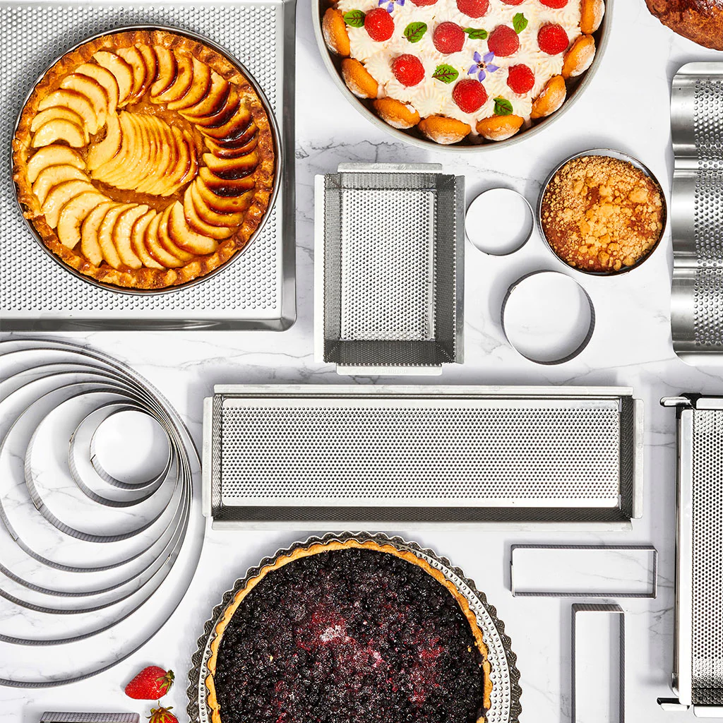 Ideal para la cocción de tartas y quiches, también podrás realizar el montaje de platos salados y postres fríos, con un acabado profesional. Es un círculo ligeramente flexible, para desmoldar y separar las preparaciones fácilmente y con comodidad.