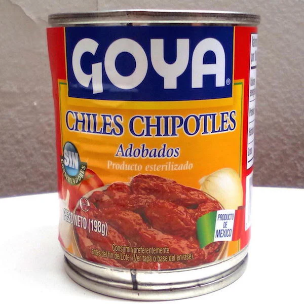 Ingredientes Chile Chipotle 55%Adobo 41% ( concentrado de tomate 22% cebolla 8% vinagre jarabe de maíz rico en fructosa aceite vegetal ) sal ajo y especias.