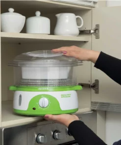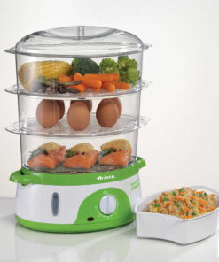 Con su diseño en columna, el Cocedor a vapor de 3 pisos Ariete te permitirá cocinar al vapor hasta tres recetas diferentes, ocupando el mínimo espacio. Esta vaporera eléctrica tiene tres cestas independientes que te facilitarán la cocción de arroz, pescado, verduras, huevos, carnes e incluso frutas, manteniendo todo su sabor y sus nutrientes. Además, podrás ver en todo momento el interior, porque las cestas y la tapa son transparentes.