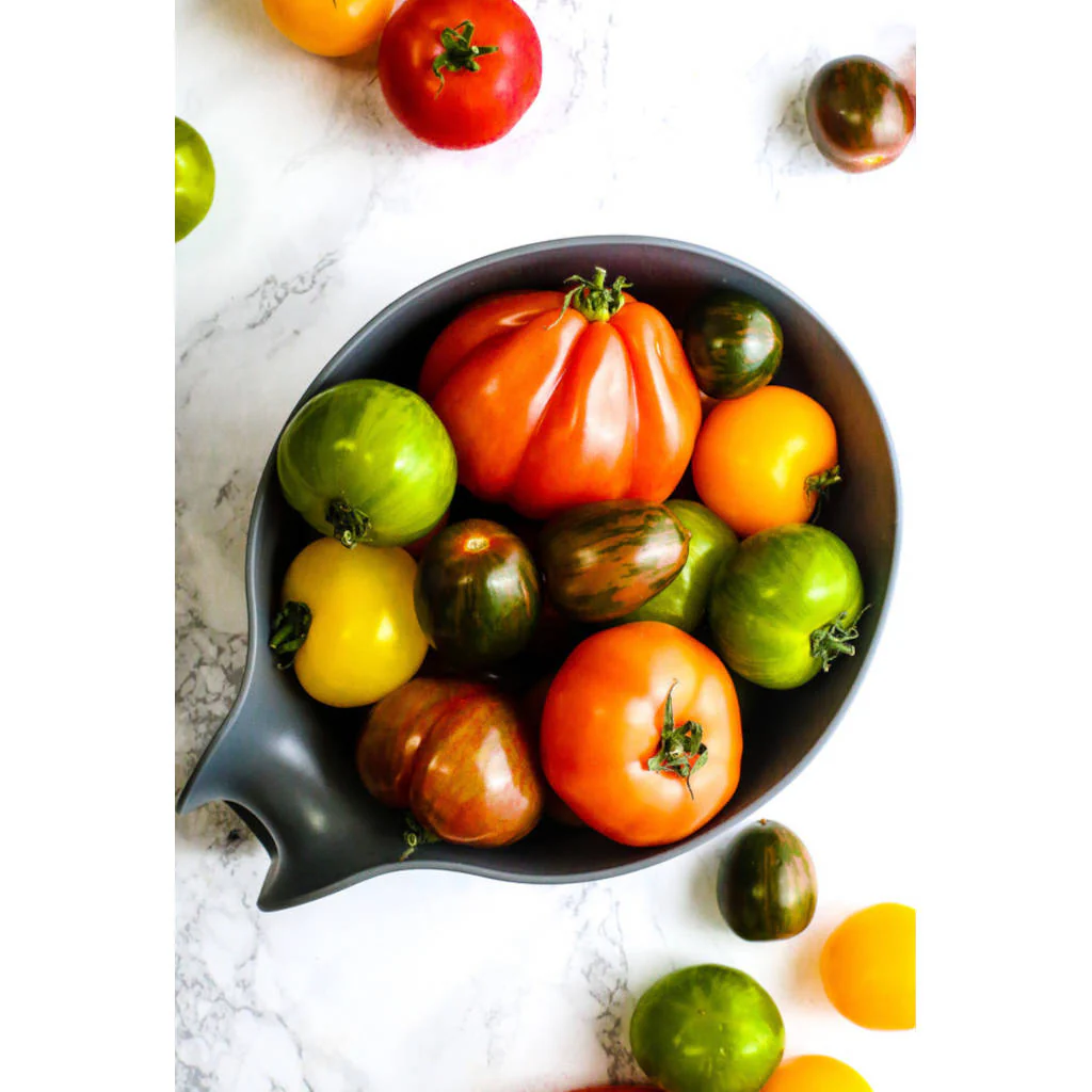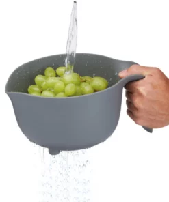 - Bol con asa y colador: Presenta agujeros en la base, para usarse de colador. Resulta ideal para lavar frutas y verduras antes de preparar ensaladas o para escurrir pasta caliente directamente en el bol.
