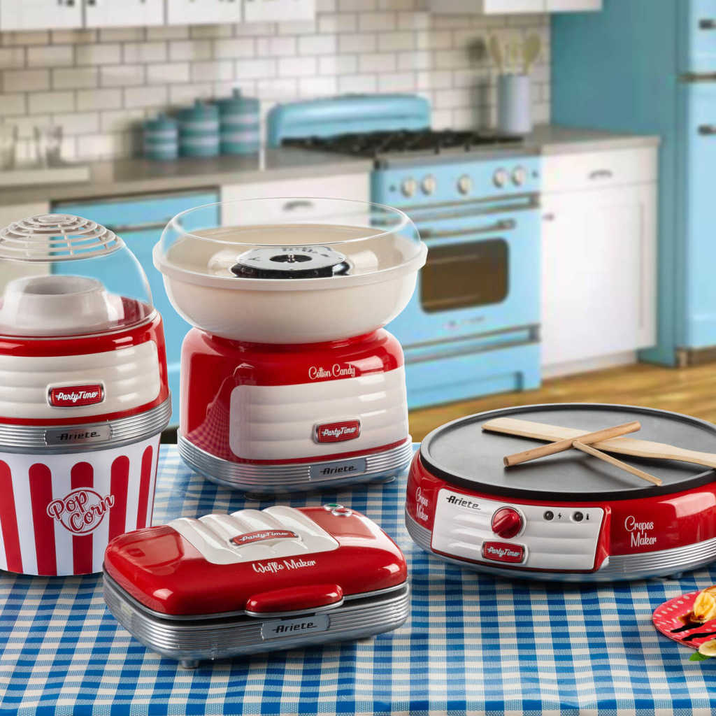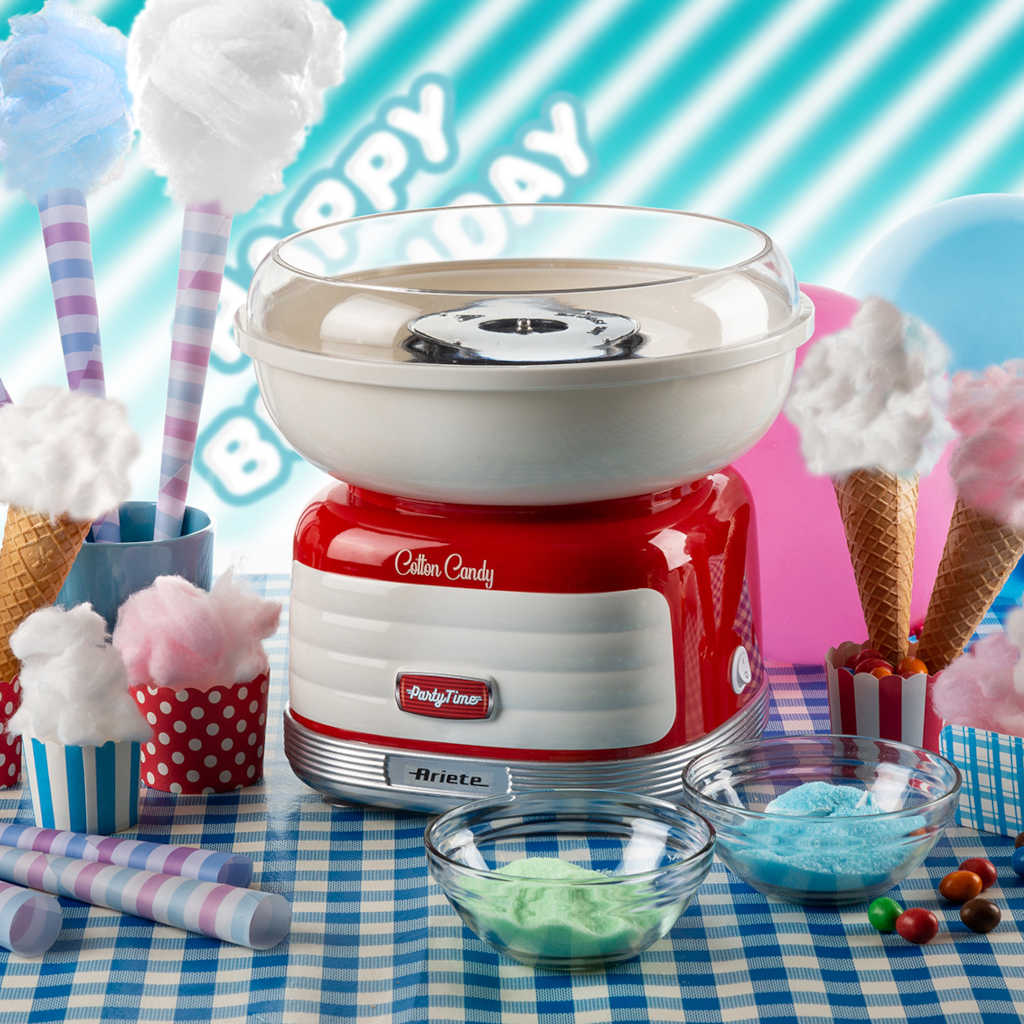 Si siempre has soñado con pasear por la feria con tu algodón de azúcar ¡tenemos algo que te va a encantar!: la Máquina de algodón de azúcar Ariete. Con un diseño precioso y de lo más retro insipirado en los años 50, las fiestas de cumpleaños de tus peques van a ser todo un acontecimiento. ¡Hasta los mayores van a querer participar preparando algodón de azúcar para todos!