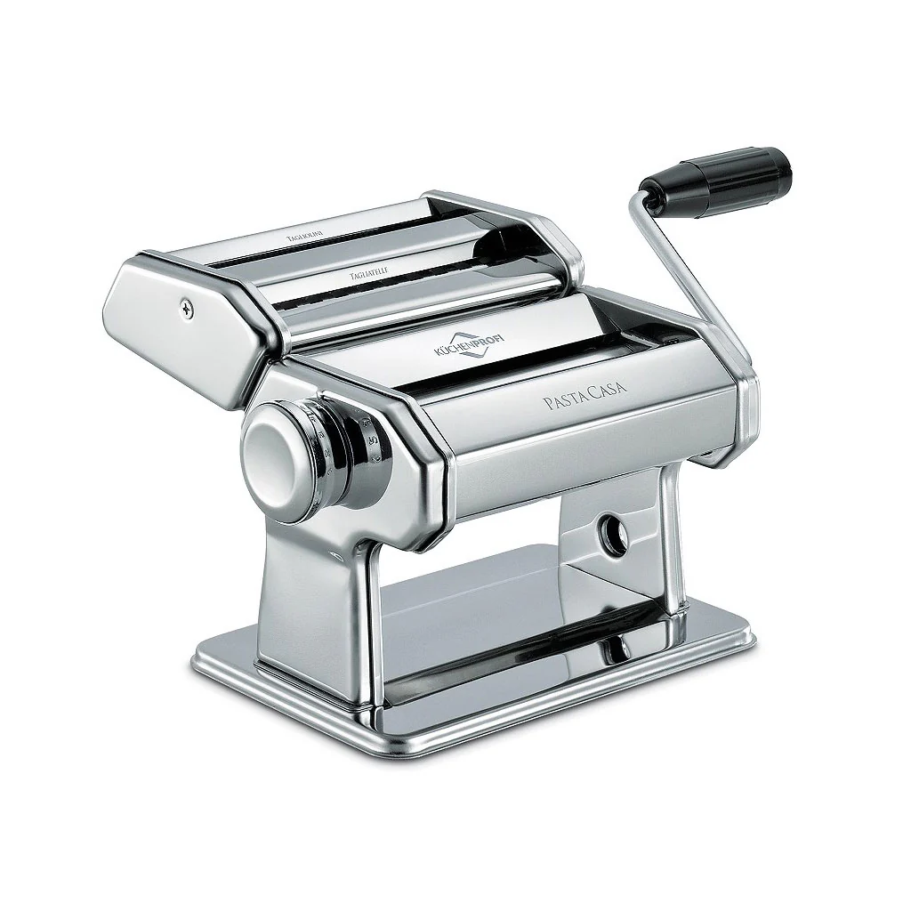 La Máquina para pasta Küchenprofi es el utensilio ideal para todos los que quieran experimentar el arte de hacer pasta fresca en casa. ¡Hacer pasta es de lo más fácil! ¡… además de divertido! Con esta máquina de pasta podrás hacer planchas de pasta fresca para preparar lasaña y canelones, podrás hacer espaguetis gruesos y tagliolini (delgados).
