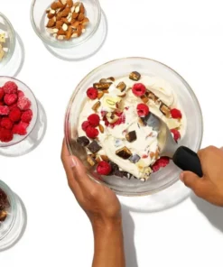 - La forma redondeada ayuda a recoger el helado más denso y es ideal para cremosos helados caseros.