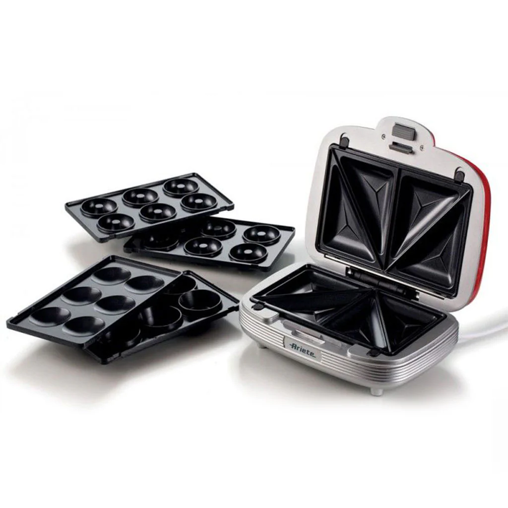 ¿Sandwiches, donuts o cupcakes? Con la Sandwichera 3 en 1 Ariete ¡lo tendrás todo! Esta sandwichera eléctrica de diseño retro cuenta con tres placas antiadherentes extraíbles para hacer bocadillos, magdalenas o rosquillas muy fácilmente. Solo vierte la masa en el molde elegido, ¡y tus desayunos y meriendas serán de lo más variado!