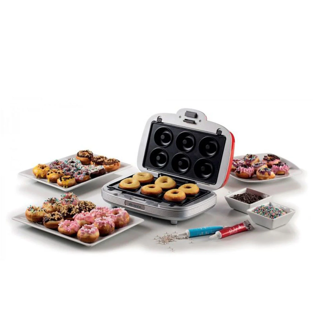 Cuando hagas donuts o cupcakes, las placas cuentan con seis cavidades, para que puedas hacer seis rosquillas o magdalenas de una sola vez. Y cuando hagas bocadillos, los prepararás de dos en dos y con la característica línea de corte diagonal de los sandwiches tradicionales.
