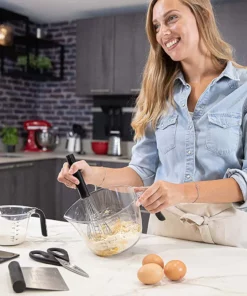Los cuencos, de 1 litro, 500 ml y 250 ml de capacidad, son ideales para usarlos a la vez o elegir cuál necesitas según la receta a preparar. Las marcas de medición, en tazas (cup), onzas líquidas y litros, te ayudarán a medir con precisión los ingredientes.