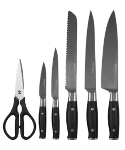 La hoja de los cuchillos es de acero inoxidable alemán forjado, con alto contenido de carbono, garantizando una gran durabilidad, gran resistencia al óxido y un corte preciso, incluso con los ingredientes más duros. El afilador incluido en el taco, te permitirá tenerlos siempre afilados como el primer día de forma rápida, fácil y muy cómoda.