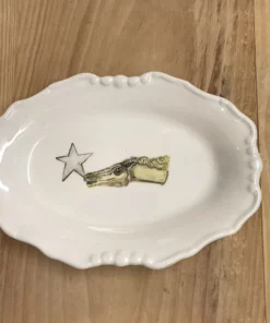 Pieza única pintada a mano en loza blanca.