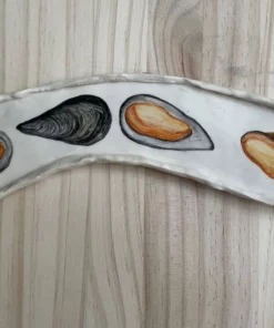 Pieza única fabricada y pintada a mano en barro blanco.