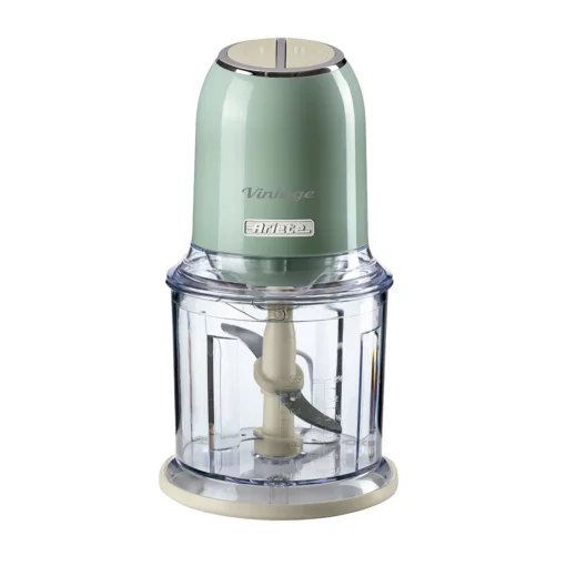 Con su diseño de aire retro, la Picadora Vintage Ariete es perfecta para dar un toque de estilo y funcionalidad a tu cocina. Su potencia de 400 W y sus 4 cuchillas de acero inoxidable la hacen perfecta para picar cualquier ingrediente de forma fácil, rápida y eficaz. Verduras, carne, quesos duros, pan, frutos secos o incluso hielo. Dispone de dos velocidades de fácil pulsión, accionables desde la parte superior de la tapa. Un ayudante tan práctico como eficiente que no puede faltar en tu cocina.