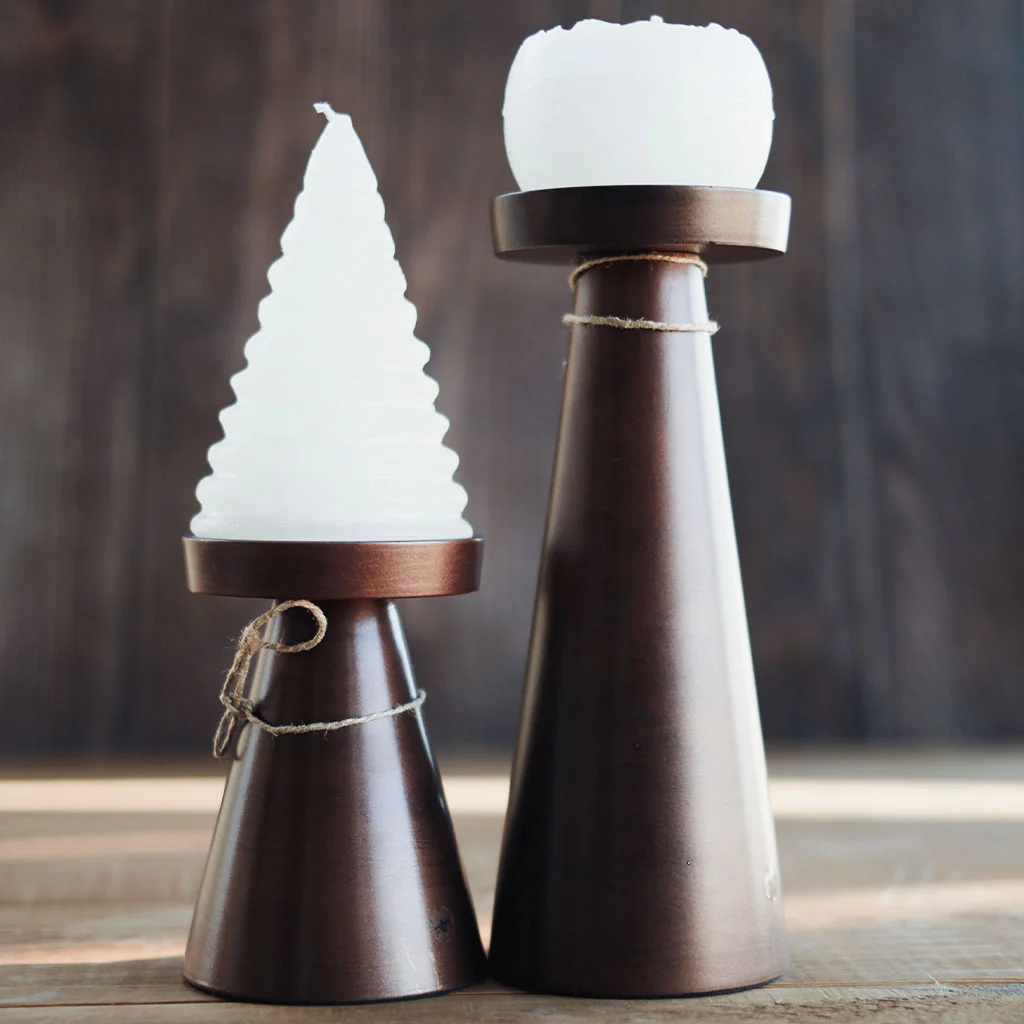 Dos tamaños disponibles: disponible en tallas M y L, ambos portavelas tienen un diámetro de 9 cm, pero difieren en altura. Uno mide 13 cm de altura mientras que el otro tiene una altura de 23 cm.