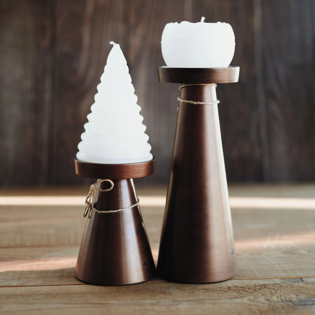 Ya sea para una cena romántica, una velada especial o simplemente para dar un toque de luz a tu espacio, este portavelas en color cobre es una elección elegante y versátil que realzará la belleza de tus velas y tu decoración en general.