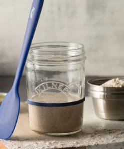 El Set para masa madre de Kilner® es un práctico pack con todos los accesorios necesarios para que puedas preparar, refrescar y mantener tu masa madre. El conjunto incluye dos tarros de vidrio con tapa, una espátula y una tapa de medición para que puedas hacer en casa tu levadura 100% natural y tenerla lista para preparar tus mejores masas.